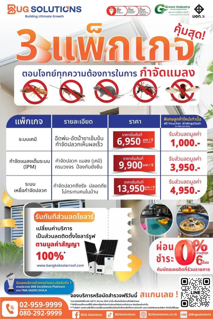 ด้วย 3 แพ็กเกจกำจัดปลวก แมลงระดับพรีเมียม จาก BUG Solution